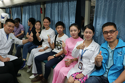 (在獻(xiàn)血車上等待獻(xiàn)血的深圳希瑪林順潮眼科醫(yī)院?jiǎn)T工)