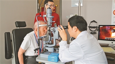 醫(yī)生在為老兵檢查眼睛
