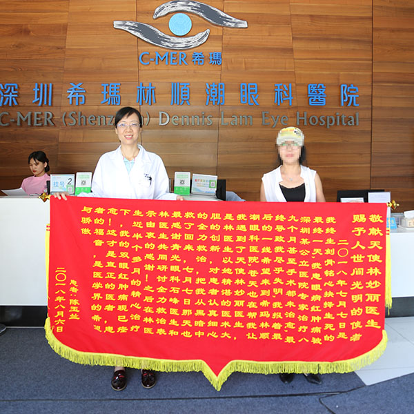 經(jīng)過治療,陳女士視力良好,她給林妙麗醫(yī)生送來一幅巨型錦旗,感謝林醫(yī)生給了她再次生命。