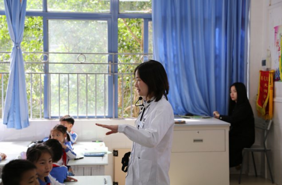 ▲希瑪眼科醫(yī)生給學(xué)生進(jìn)行愛眼護(hù)眼科普宣講
