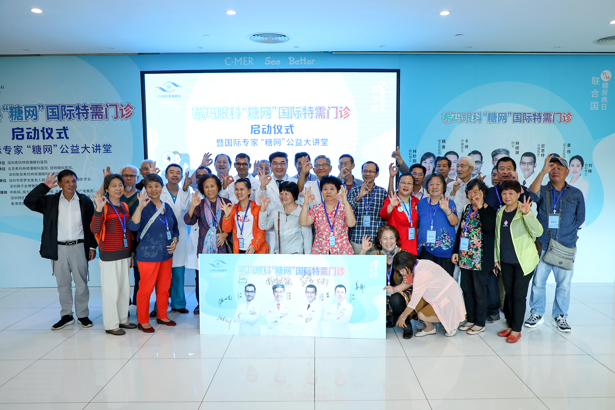 為關(guān)愛糖尿病人群眼健康狀況,深圳?,斄猪槼毖劭漆t(yī)院在11月14日“聯(lián)合國糖尿病日”正式成立“糖網(wǎng)”國際特需門診,專設(shè)“糖網(wǎng)”門診國際專家團(tuán),為糖尿病患者提供專家講座、眼健康檢查、專家親診等“一站式”診療服務(wù)。此次活動還得到了深圳市筑夢關(guān)愛老人服務(wù)中心、深圳市老年攝影學(xué)會、深圳獅子會博雅服務(wù)隊(duì)的支持。