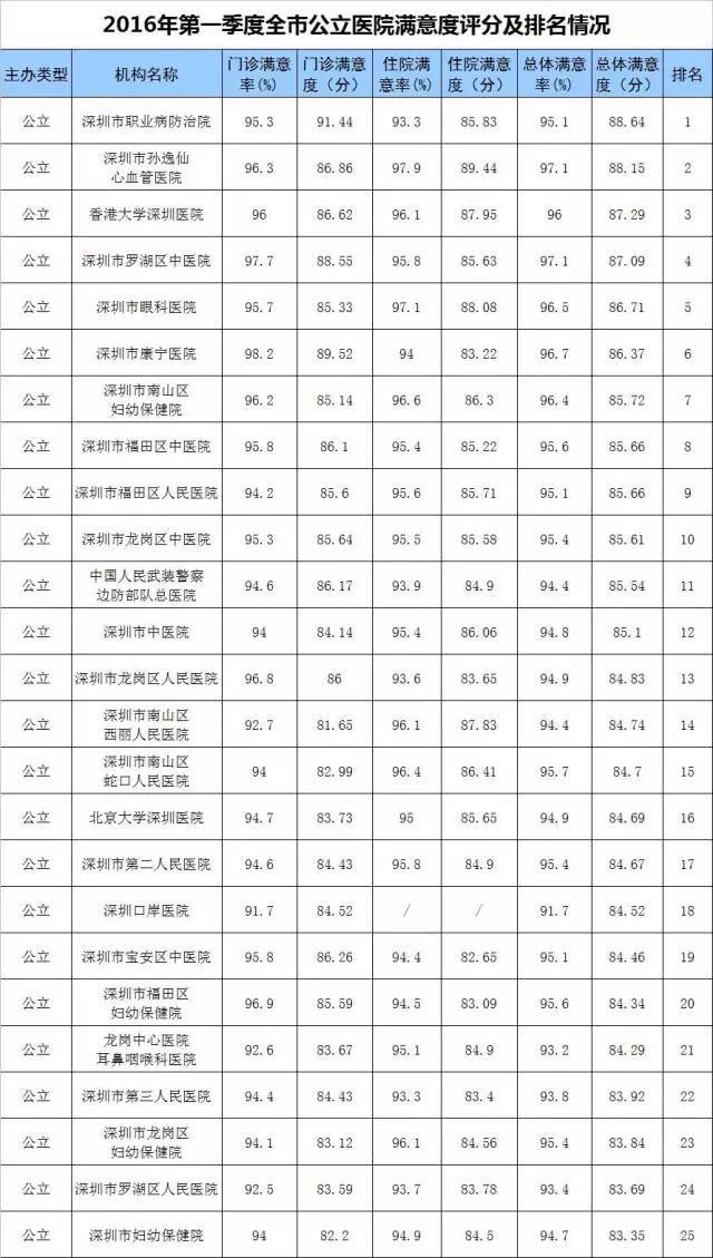 全市公立醫(yī)院滿意度排名前3名的醫(yī)院分別是: