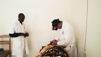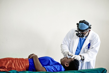 (尼思特醫(yī)生正在用眼底鏡為盧旺達城市的病人提供免費眼科檢查,檢查是否患有糖尿病性黃斑疾病)