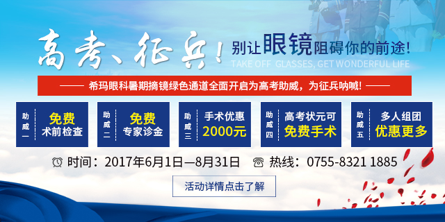 為幫助廣大學子脫離近視限制,成功入伍,報考心儀的專業(yè)和大學,深圳希瑪林順潮眼科醫(yī)院特別推出“助力學子清晰看世界計劃”!