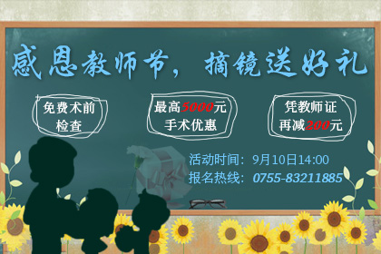 厚厚的眼鏡,給老師以及上班族白領們的工作和生活帶來諸多的不便,嚴重影響其工作的效率和生活的質量。在“教師節(jié)”到來之際,為了給老師和都市白領送去摘鏡福利,圓清晰視力夢想,我院特別邀請想要“摘鏡”的教師以及白領參加近視手術感恩回饋活動?;顒赢斕?,我院將公開近視手術的全過程,揭開飛秒激光近視手術的神秘面紗;?,斍鈱<倚ぴ掠搬t(yī)生為大家解答關于近視手術的一些常見問題;還有多活動驚喜等待大家現場來領取!