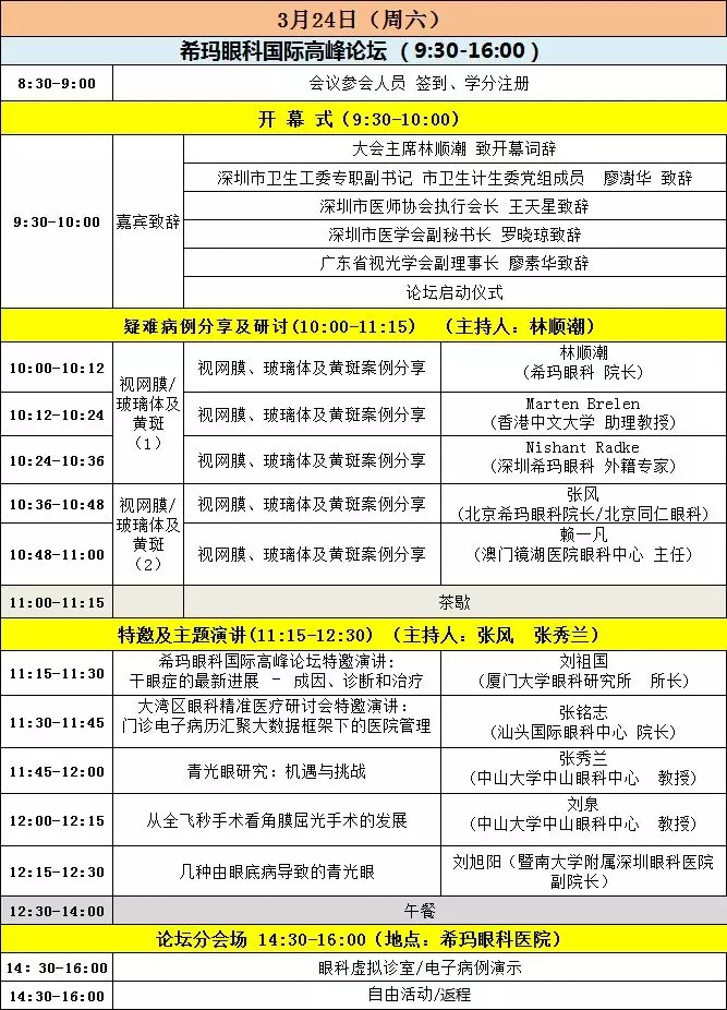 主辦單位:深圳市醫(yī)師協(xié)會、深圳市醫(yī)學(xué)會、深圳希瑪林順潮眼科醫(yī)院