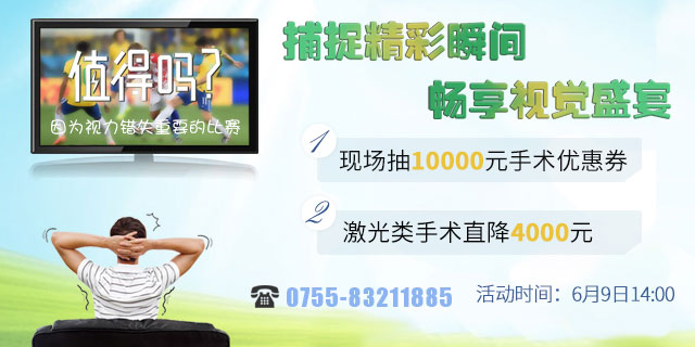 近視手術(shù)哪種好?安不安全?“全飛秒激光”和“飛秒激光”有什么不一樣呢?近視手術(shù)那么貴有沒有優(yōu)惠呢?2018年6月9日,深圳?,斄猪槼毖劭漆t(yī)院舉辦“捕捉精彩瞬間,暢享視覺盛宴”為主題的近視優(yōu)惠活動,助力近視患者成功摘鏡清晰看世界杯。報名參加活動即可有機會抽取價值10000元近視手術(shù)大獎。