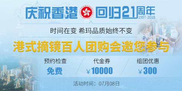 2018年是香港回歸祖國21周年,為了歡慶香港回歸,深圳希瑪眼科醫(yī)院于2018年7月8日開展“港式摘鏡百人團購會”近視特大鉅惠活動。